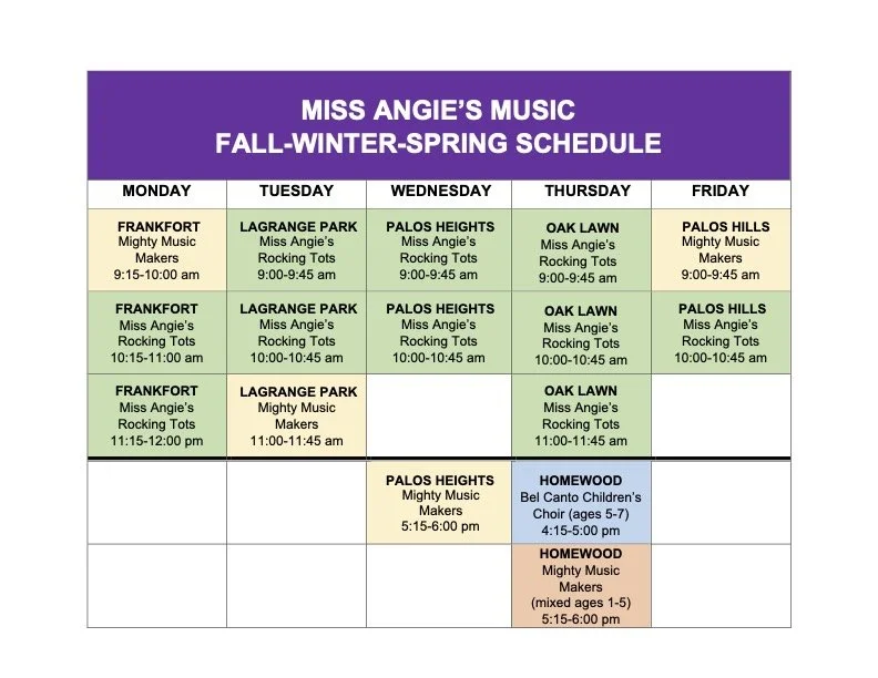 PALOS HEIGHTS: SESSION I 1/14-2/18, SESSION II 2/25-4/8 (no class 4/1), SESSION III 4/15-5/27 (no class 5/6)